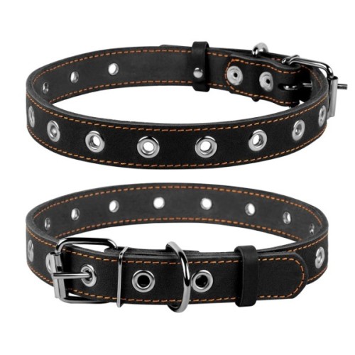 Нашийник безрозмірний виготовлений із якісної шкіри, підійде як цуценяті, так і дорослому собаці. Кожний отвір захищений металевим обідком, що й собі збільшує ресурс нашийника.