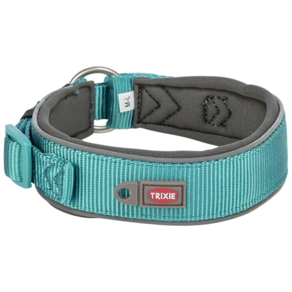 Нашийник Trixie Premium екстраширокий – це високоякісний міцний аксесуар, який забезпечить комфорт і безпеку вашому собаці під час прогулянок. Неопренова підкладка робить його м'яким і зручним для носіння. Нашийник має пряжку із захистом від натягнення, яка запобігає випадковому розстібанню. Світловідбиваючі елементи нашийника допомагають песику стати помітним у темряві для водіїв. Нашийник має петлю для кріплення жетона або мигалки, а також можливість кріплення трекера на вузькій застібці. Відповідає вимогам щодо добробуту тварин відповідно до розділу 18 (AT).