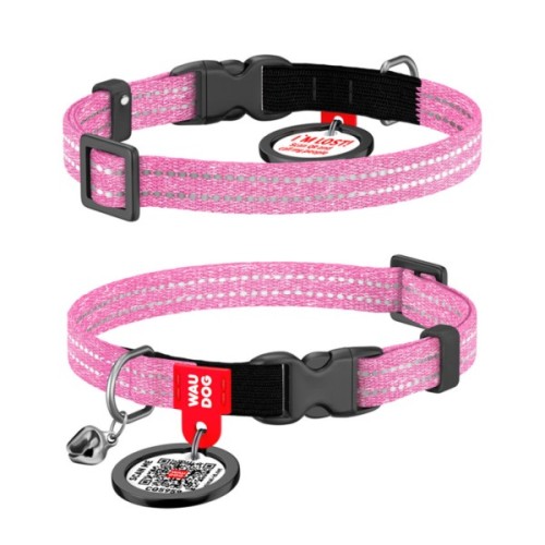 Нашийник, тварин, WAUDOG, Recotton, з, QR, паспортом, пластиковий, фастекс, XS, рожевий, 16427