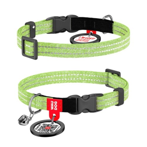 Нашийник, тварин, WAUDOG, Recotton, з, QR, паспортом, пластиковий, фастекс, XS, салатовий, 16425