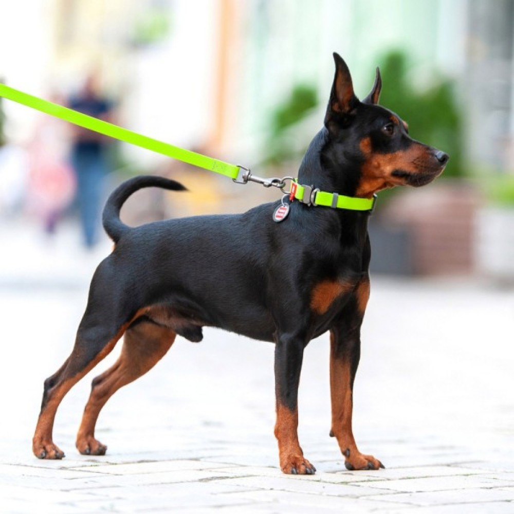 Нашийник виготовлений з інноваційного матеріалу COLLARTEX. Основними перевагами цього матеріалу є міцність, стійкість проти впливу вологи та м'якість.