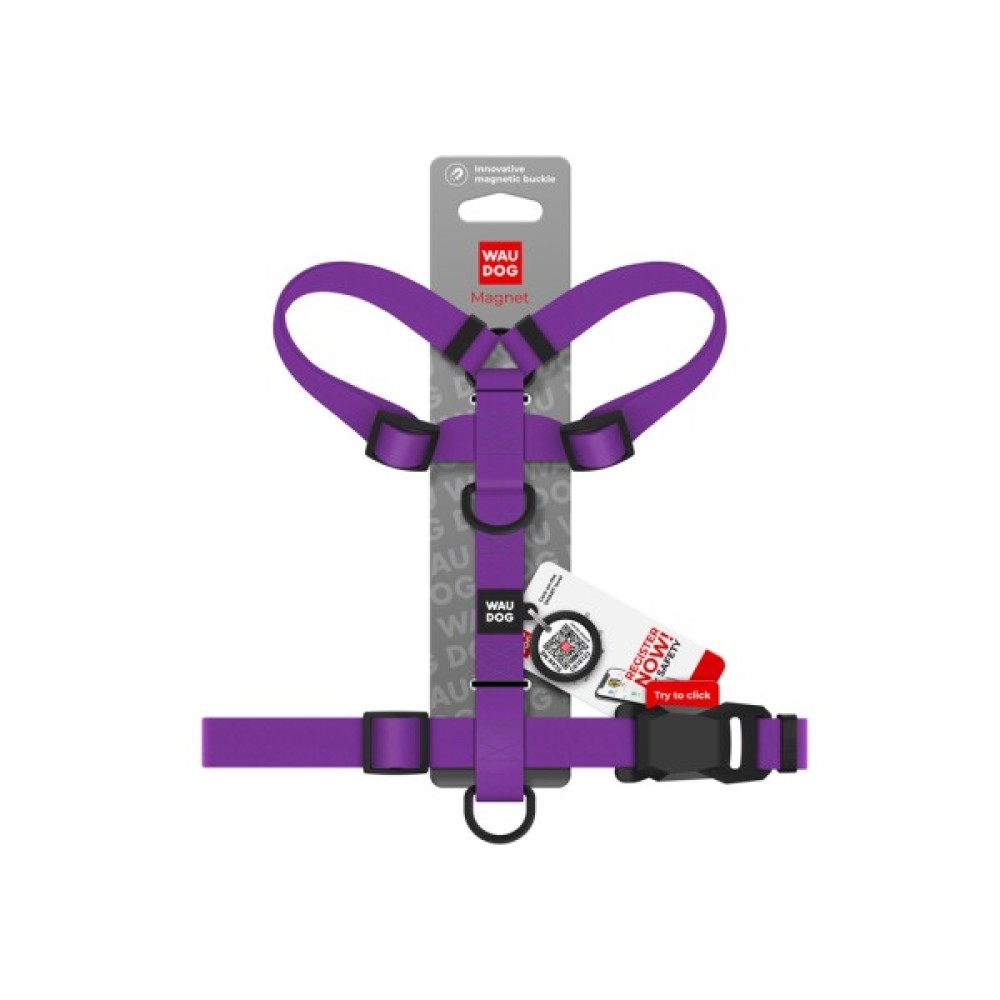 Шлея WAUDOG Magnet оснащена інноваційною магнітною застібкою, яка поєднує в собі зручність та надійність. Вона дозволяє легко та швидко застібати шлею однією рукою, що особливо зручно для власників активних собак. Завдяки продуманій конструкції застібка витримує високі навантаження й не розстібається самостійно, гарантуючи повну безпеку улюбленця навіть під час найенергійніших прогулянок. Шлея виготовлена з матеріалу COLLARTEX, який не вбирає воду та бруд. Завдяки особливій Н-подібній формі, вона ідеально сідає на собаку і забезпечує йому максимальний комфорт. Шлея розроблена таким чином, що при натягу повідця не відбувається стискання дихальних шляхів тварини.