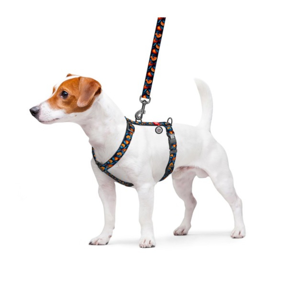 Шлея для собак WAUDOG Nylon анатомічна H-подібна з QR-паспортом "Апельсини" пластиковий фастекс, XL (347-4054)