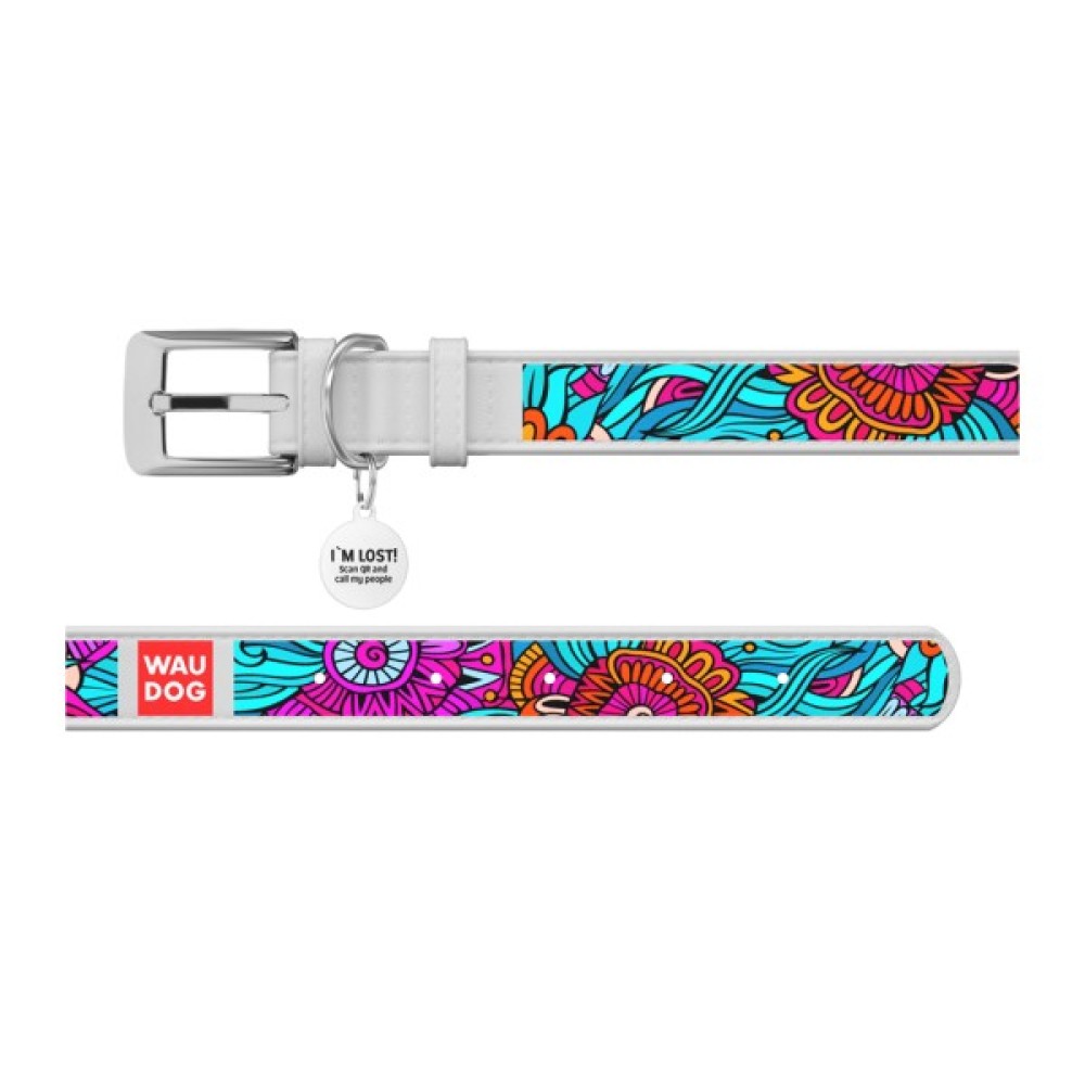 Амуніція WAUDOG – нова серія шкіряної амуніції, виготовленої з якісної натуральної шкіри, що прикрашена повнокольоровим зносостійким малюнком. Завдяки яскравим і привабливим візерункам ці вироби просто не зможуть залишитися непоміченими. Довжина нашийника підбирається відповідно до обхвату шиї хвостатого друга, який визначають вимірювальною стрічкою. При цьому правильно додавати до отриманого результату від 2 см (для середніх і дрібних порід) до 5 см (для великих), щоб нашийник не натирав і не здавлював шию тварини.