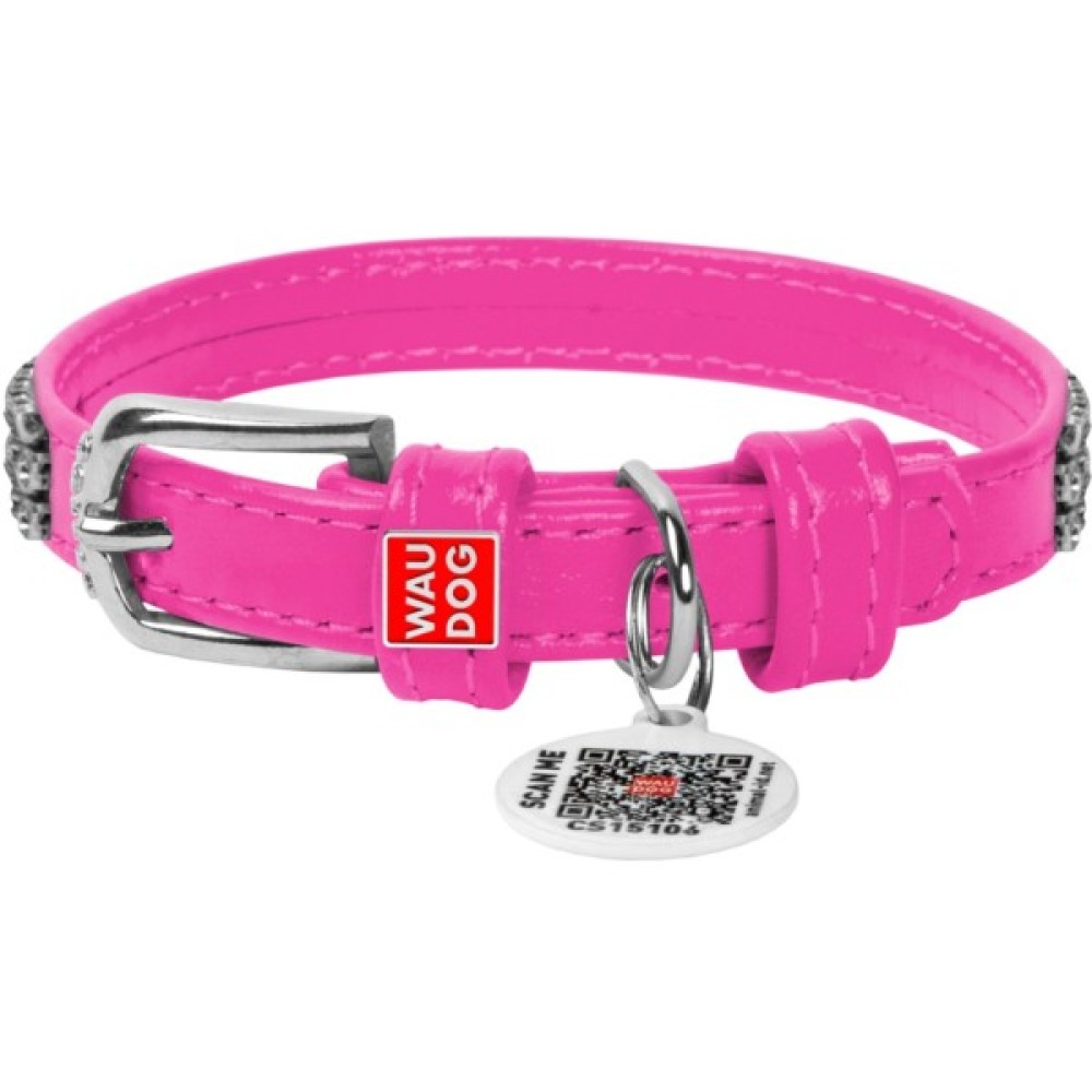 Нашийник для тварин WAUDOG Glamour з QR-паспортом "Стрази" XS Ш 12 мм рожевий (33087)