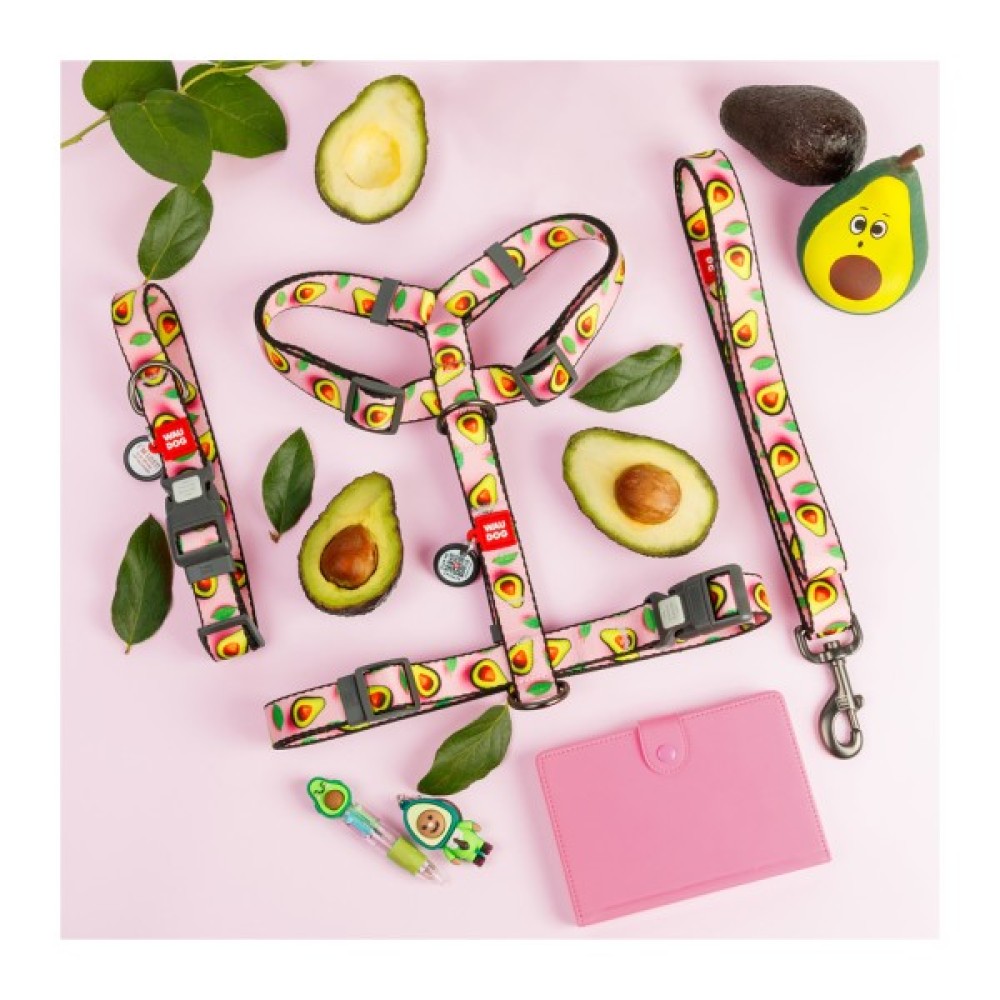 Нашийник для тварин WAUDOG Nylon з QR адресником "Авокадо на рожевому" пластиковий фастекс XS (278-4051)