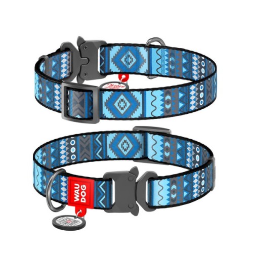 Нашийник для тварин WAUDOG Nylon з QR паспортом "Етно синій" металева пряжка-фастекс L (5189)