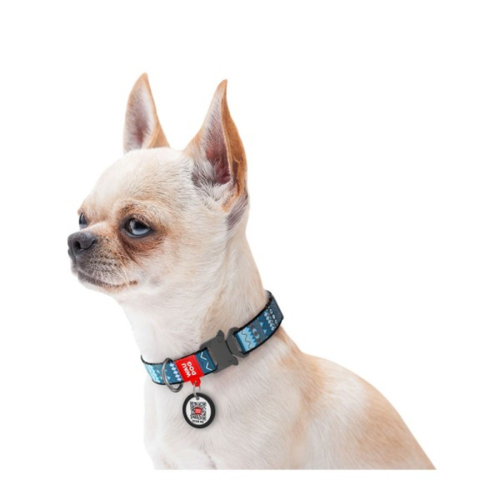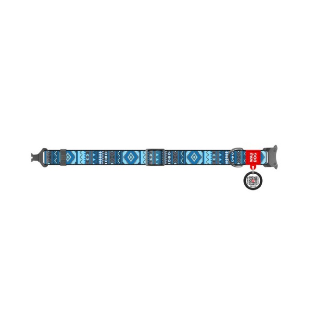 Нашийник для тварин WAUDOG Nylon з QR паспортом "Етно синій" металева пряжка-фастекс M (5186)