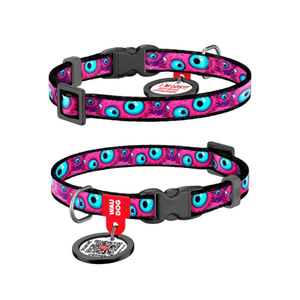 Нашийник для тварин WAUDOG Nylon з QR паспортом "Око монстра" для котів та дрібних порід собак, XS (278-4049)