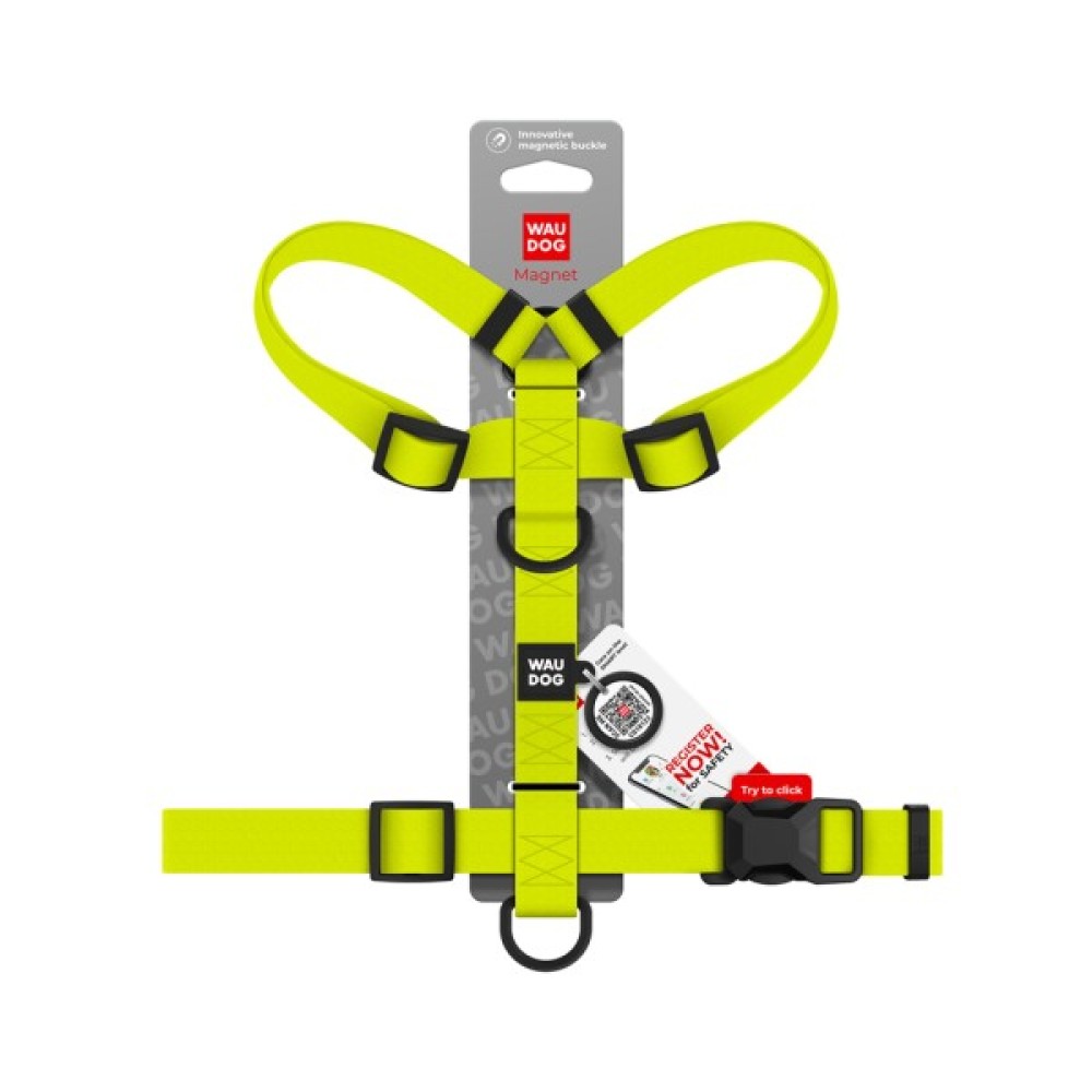 Шлея WAUDOG Magnet оснащена інноваційною магнітною застібкою, яка поєднує в собі зручність та надійність. Вона дозволяє легко та швидко застібати шлею однією рукою, що особливо зручно для власників активних собак. Завдяки продуманій конструкції застібка витримує високі навантаження й не розстібається самостійно, гарантуючи повну безпеку улюбленця навіть під час найенергійніших прогулянок. Шлея виготовлена з матеріалу COLLARTEX, який не вбирає воду та бруд. Завдяки особливій Н-подібній формі, вона ідеально сідає на собаку і забезпечує йому максимальний комфорт. Шлея розроблена таким чином, що при натягу повідця не відбувається стискання дихальних шляхів тварини.