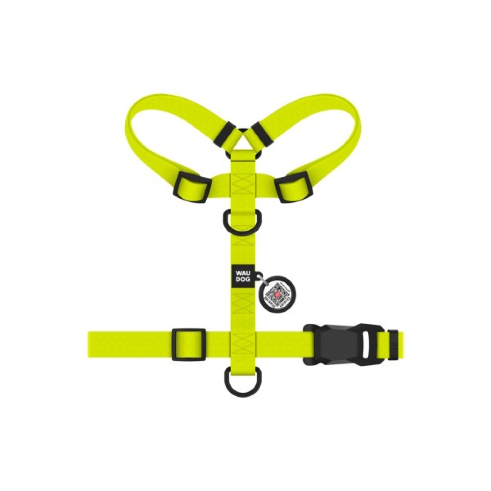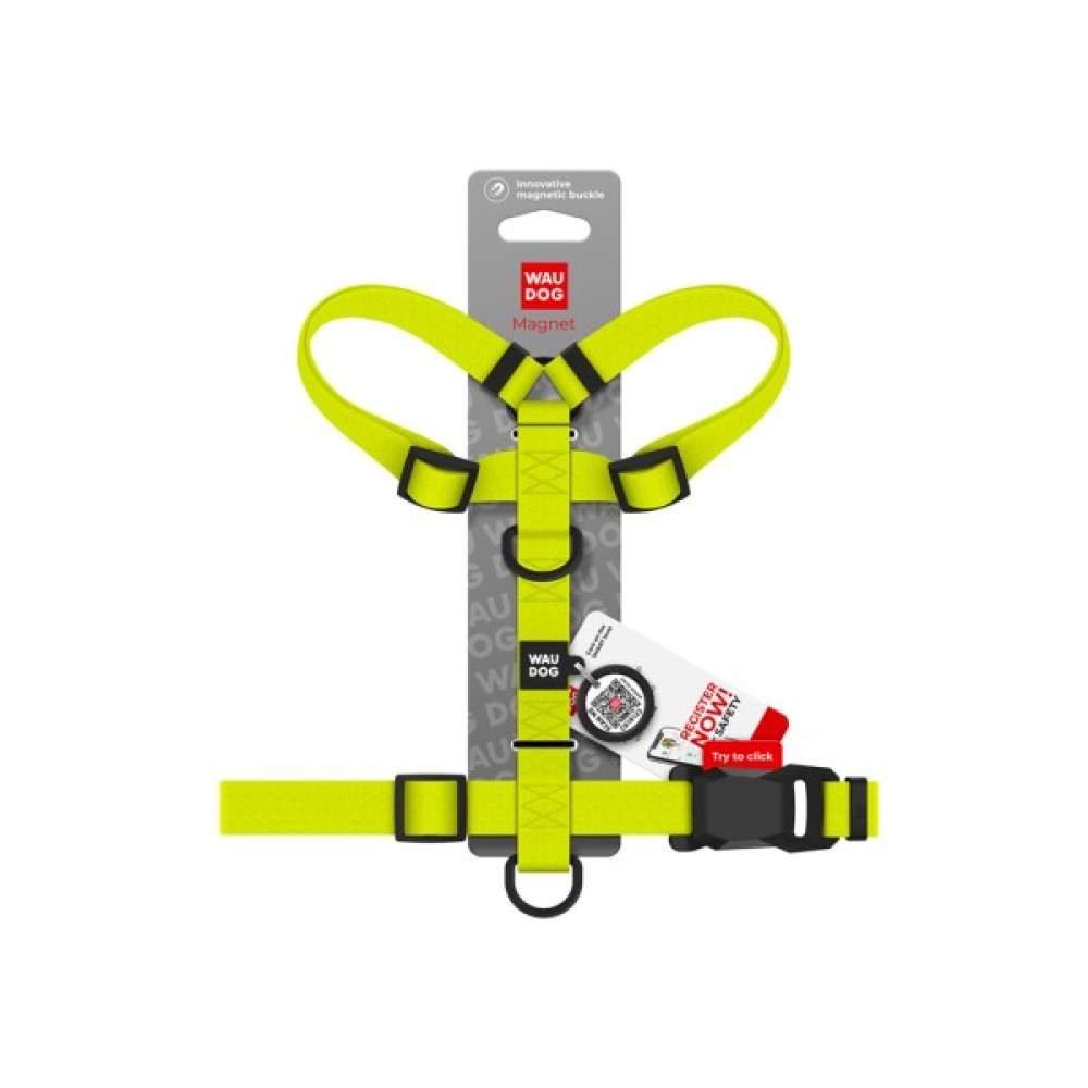 Шлея для собак WAUDOG Magnet анатомічна Н-подібна з QR-паспортом, магнітна пряжка-фастекс S лимонна (262226)