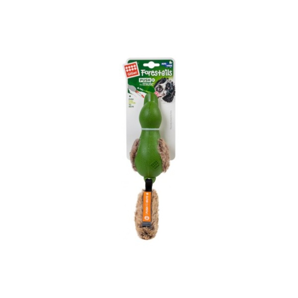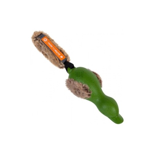 Іграшка для собак зроблена з високоякісної гуми та штучного хутра у вигляді качки. Призначена для середніх та великих порід собак. При натисканні видає звук. Можна вмикати та вимикати звук залежно від ситуації. Щоб вимкнути звук – необхідно вштовхнути клапан пальцем усередину іграшки, щоб увімкнути – потягнути за ремінець. Іграшка підходить для активної гри.