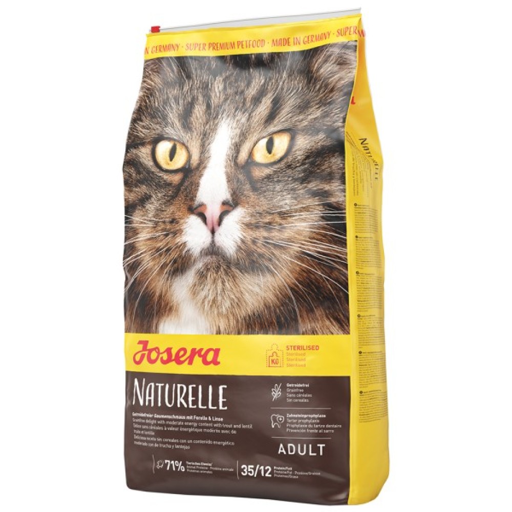Цей корм, що виробляється в Німеччині, відповідає найвищим стандартам якості. Josera Naturelle – це суперпреміум продукт, створений з урахуванням унікальних потреб кішок від 12 місяців. Він без глютену та без зернових, не містить ГМО, консервантів, штучних барвників, ароматизаторів, а також пшениці, сої, цукру та молочних продуктів. Завдяки ретельній перевірці на всіх етапах виробництва, корм гарантує безпеку та натуральність.