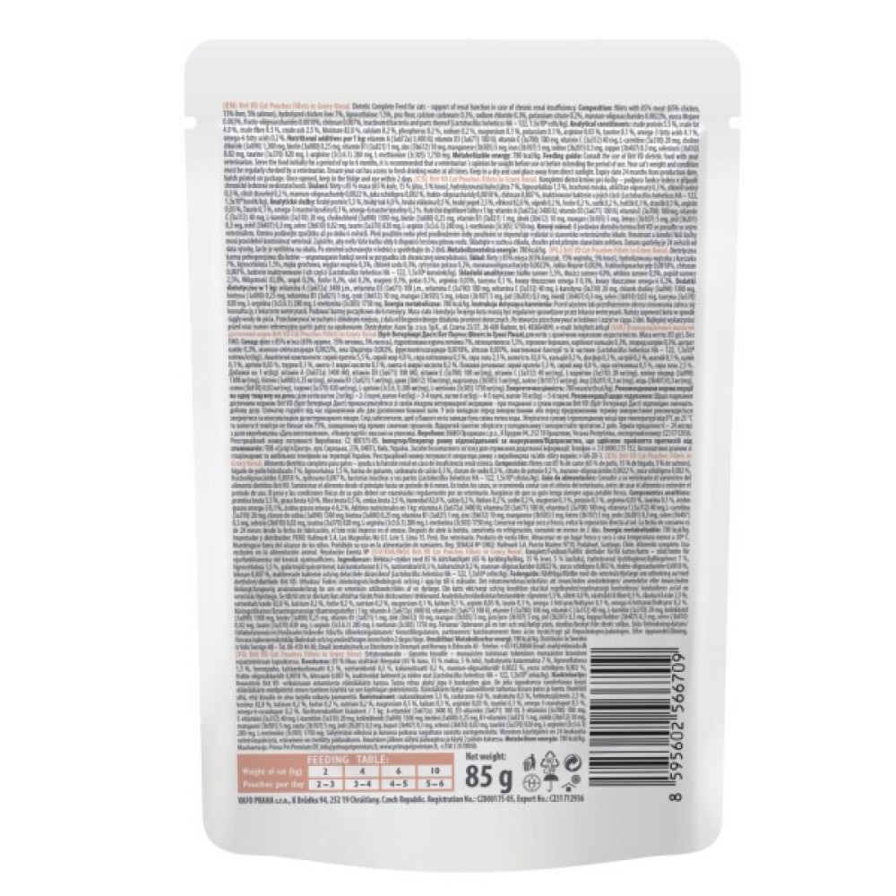 Крім того, збалансований вміст омега-3 та омега-6 жирних кислот сприяють здоров'ю шкіри та шерсті. Перед використанням цього корму важливо проконсультуватися з ветеринаром. Він не підходить для кошенят, вагітних та годуючих кішок. Забезпечте постійний доступ до свіжої води. Brit GF VetDiets Renal — це якість та дбайливий догляд за вашим улюбленцем.