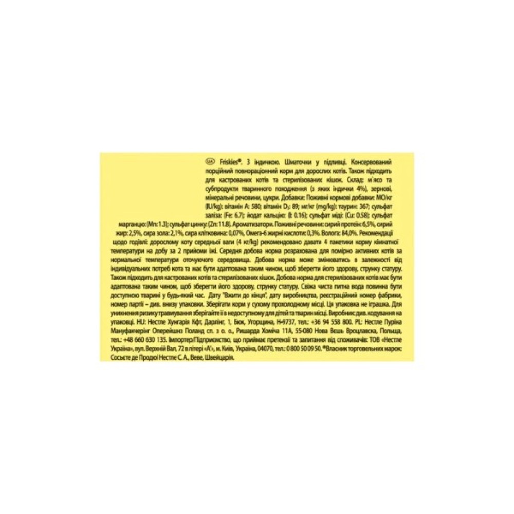 Вологий корм для кішок Purina Friskies шматочки в підливі з індичкою 85 г (7613036965248)