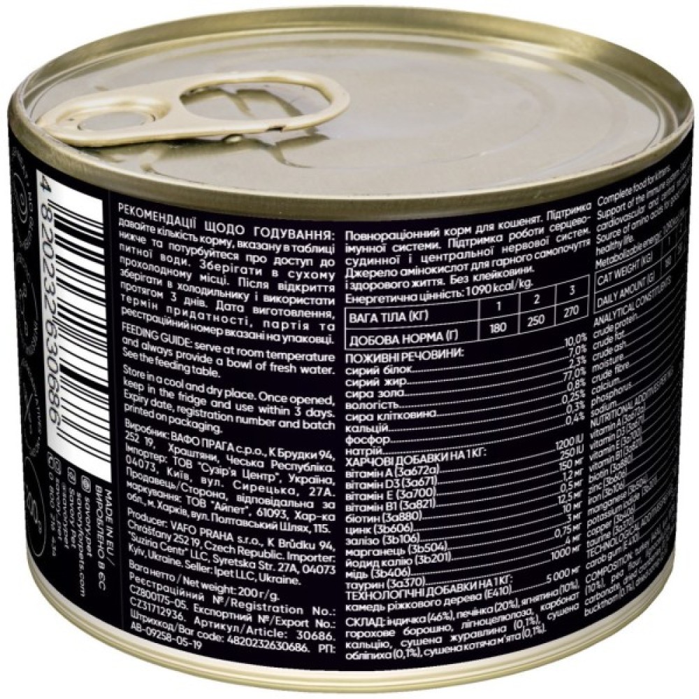 Основний інгредієнт — індичка — є цінним джерелом білка, що підтримає ріст і розвиток кошеня. Додаткові інгредієнти, такі як ягня, печінка та сушені ягідки, збагачують раціон вітамінами і антиоксидантами.