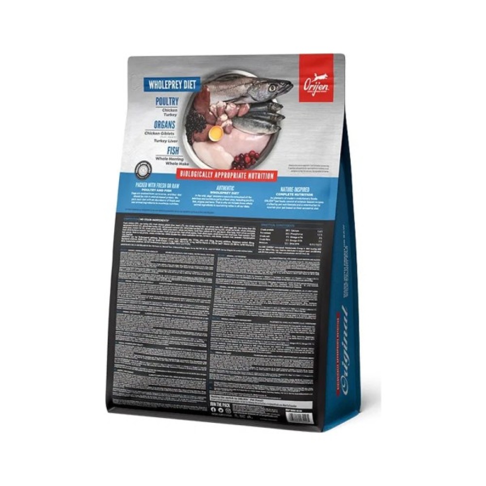 Orijen Original – це холістик-клас продукт, що включає до 85% інгредієнтів тваринного походження, таких як свіже курча, індичка, цільна риба та яйця. Це не тільки насичує організм білками, а й відповідає біологічним потребам собаки, наближаючи його раціон до природного раціону предків.