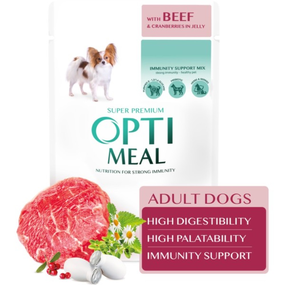 Вологий, корм, собак, Optimeal, з, яловичиною, та, журавлиною, желе, 100, г, 4820215369626