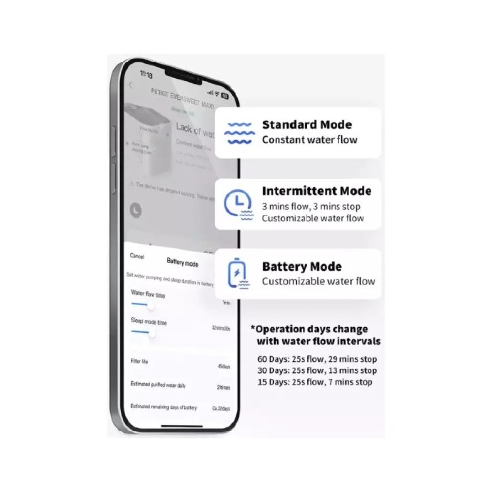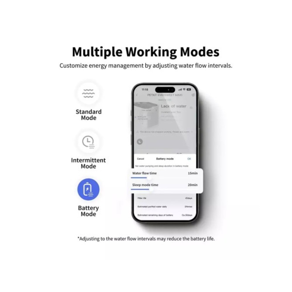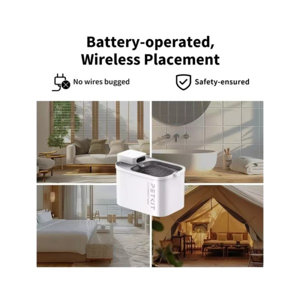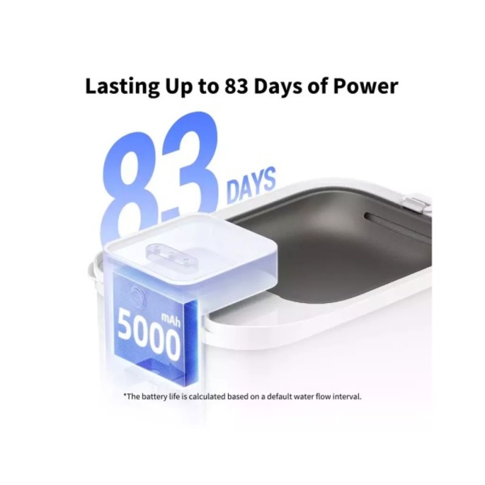 З Eversweet Max вам більше не потрібно буде щодня перевіряти наявність води в мисці та постійно міняти її вручну. Завдяки вбудованій батареї та терміну автономної роботи до 83 днів на одному заряд ви можете повністю автоматизувати цей процес. А також розмістити цей питний фонтанчик для домашніх тварин у будь-якому місці вдома без обмежень, пов'язаних із доступом до розетки.
