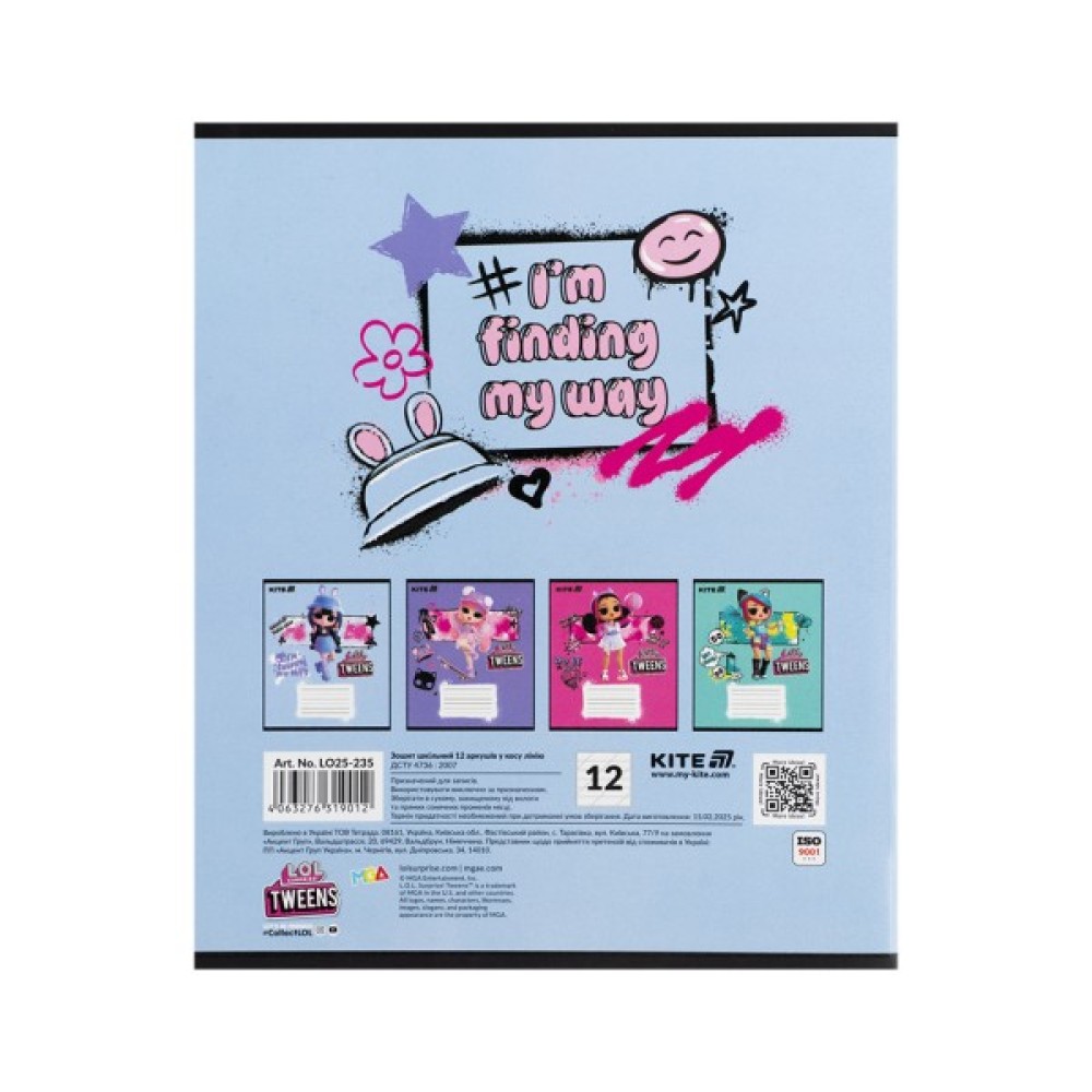 Зошит Kite LOL, 12 аркушів, коса лінія (LO25-235)