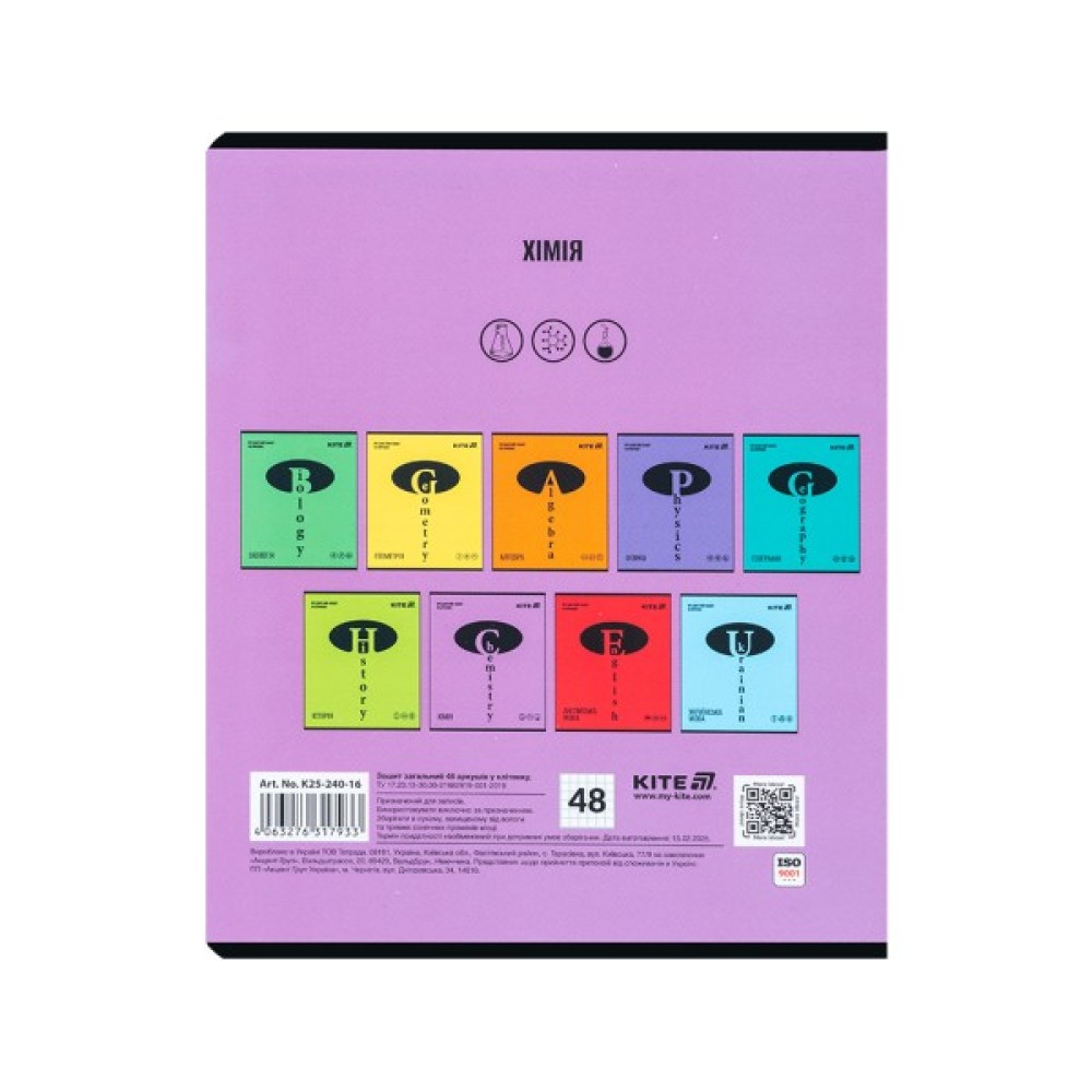 Зошит предметний з Хімії Kite має стильну тематичну обкладинку, яка заохочуватиме до навчання та надихатиме з радістю пізнавати усі глибини науки.