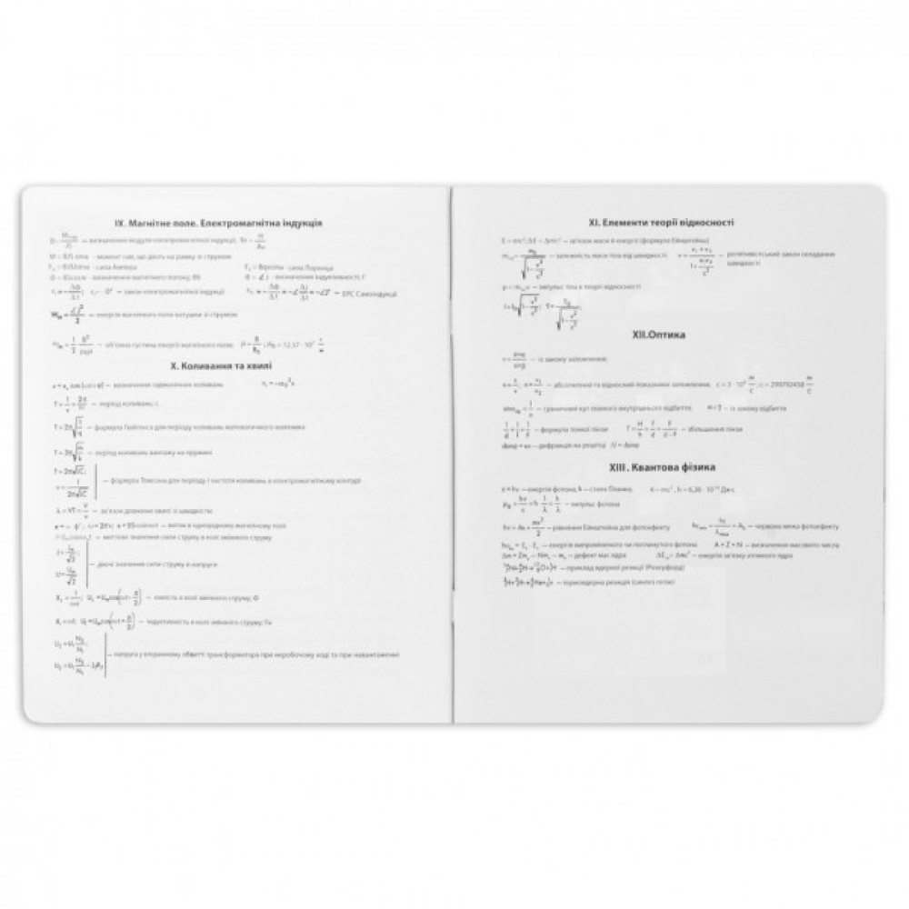 - У внутрішньому блоці на шести сторінках розміщено довідкову інформацію. Ця інформація включає основні фізичні формули та закони, короткі описи ключових понять та теорій. Таким чином, предметний зошит з фізики є корисним посібником для школярів, надаючи необхідну інформацію безпосередньо у навчальному процесі;