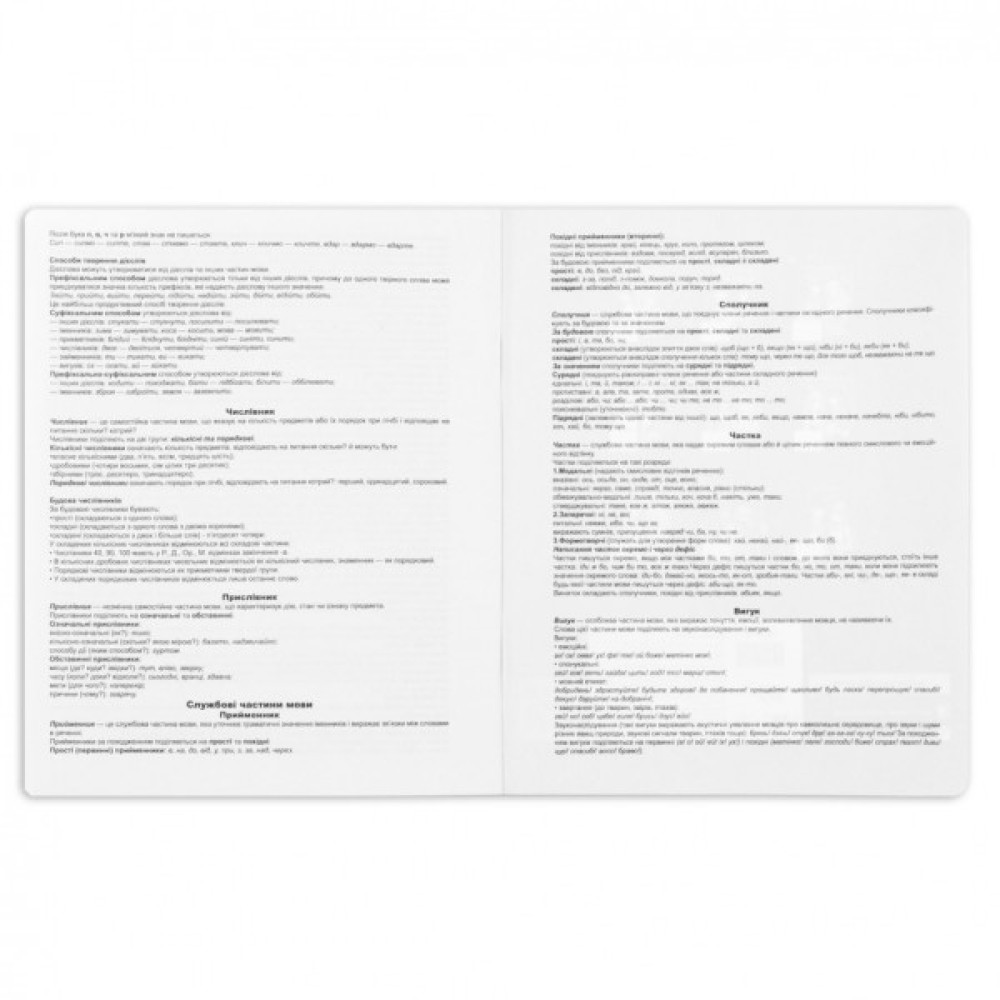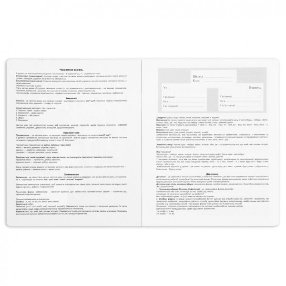 Зошит А5 формату 48 аркушів торгової марки YES з інформацією зі шкільного предмета Українська мова