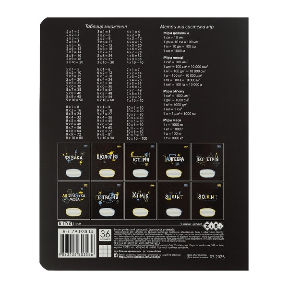 Зошит учнівський шкільний серії "BLACK" з алгебри від ZiBi з креативним сучасним дизайном обкладинки та блоком корисної довідкової інформації чудово підходять для виконання класних та домашніх робіт.