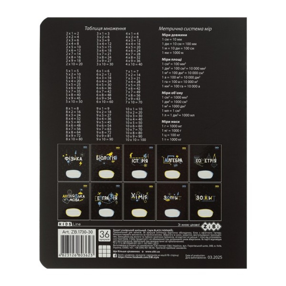 Зошит учнівський шкільний серії "BLACK" з фізики від ZiBi з креативним сучасним дизайном обкладинки та блоком корисної довідкової інформації чудово підходять для виконання класних та домашніх робіт.
