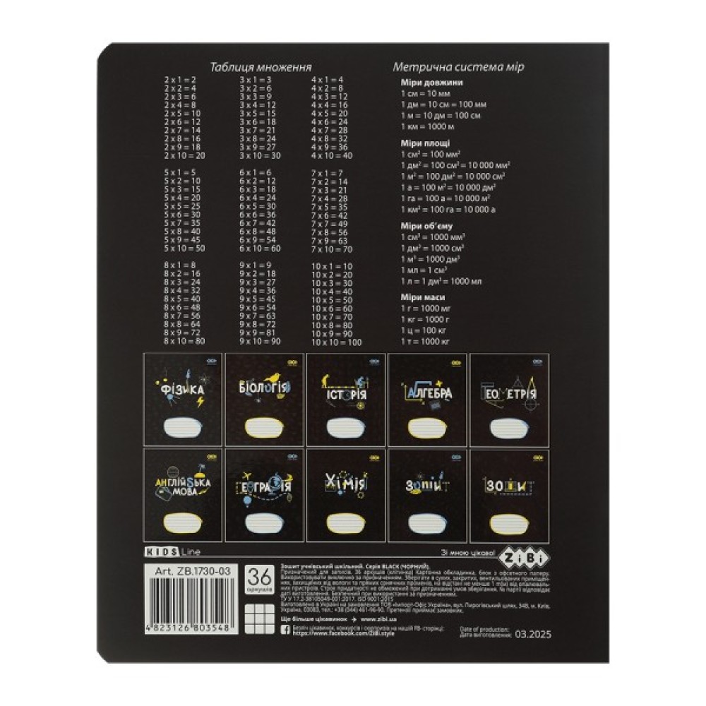 предметний BLACK, 36 аркушів, клітинка, геометрія