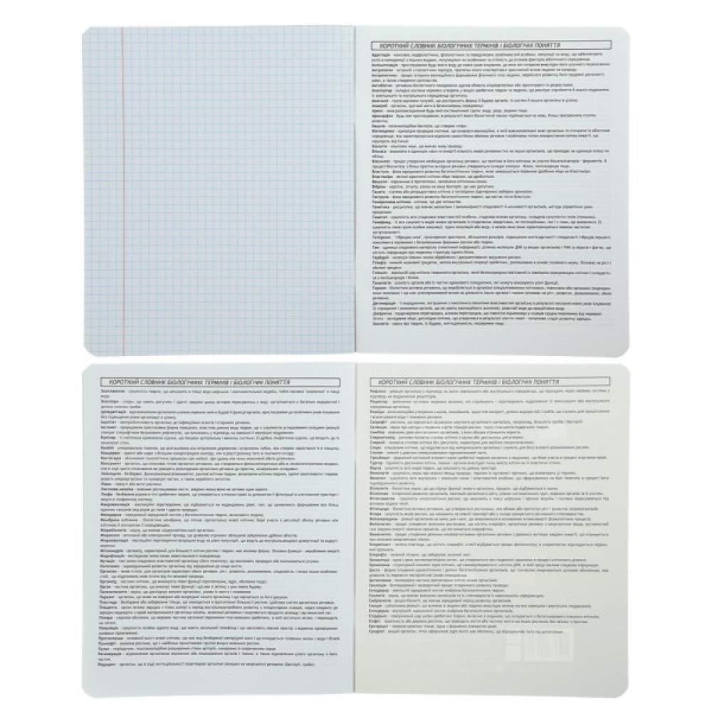 - на внутрішньому боці обкладинки, а також на першому та останньому додатковому аркуші, розміщено довідкову інформацію з предмета (загалом 6 сторінок визначень, понять і правил з предмета)