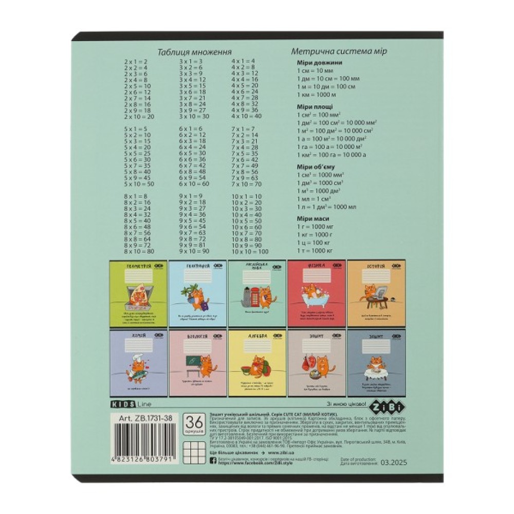 предметний CUTE CAT, 36 аркушів, клітинка, англійс