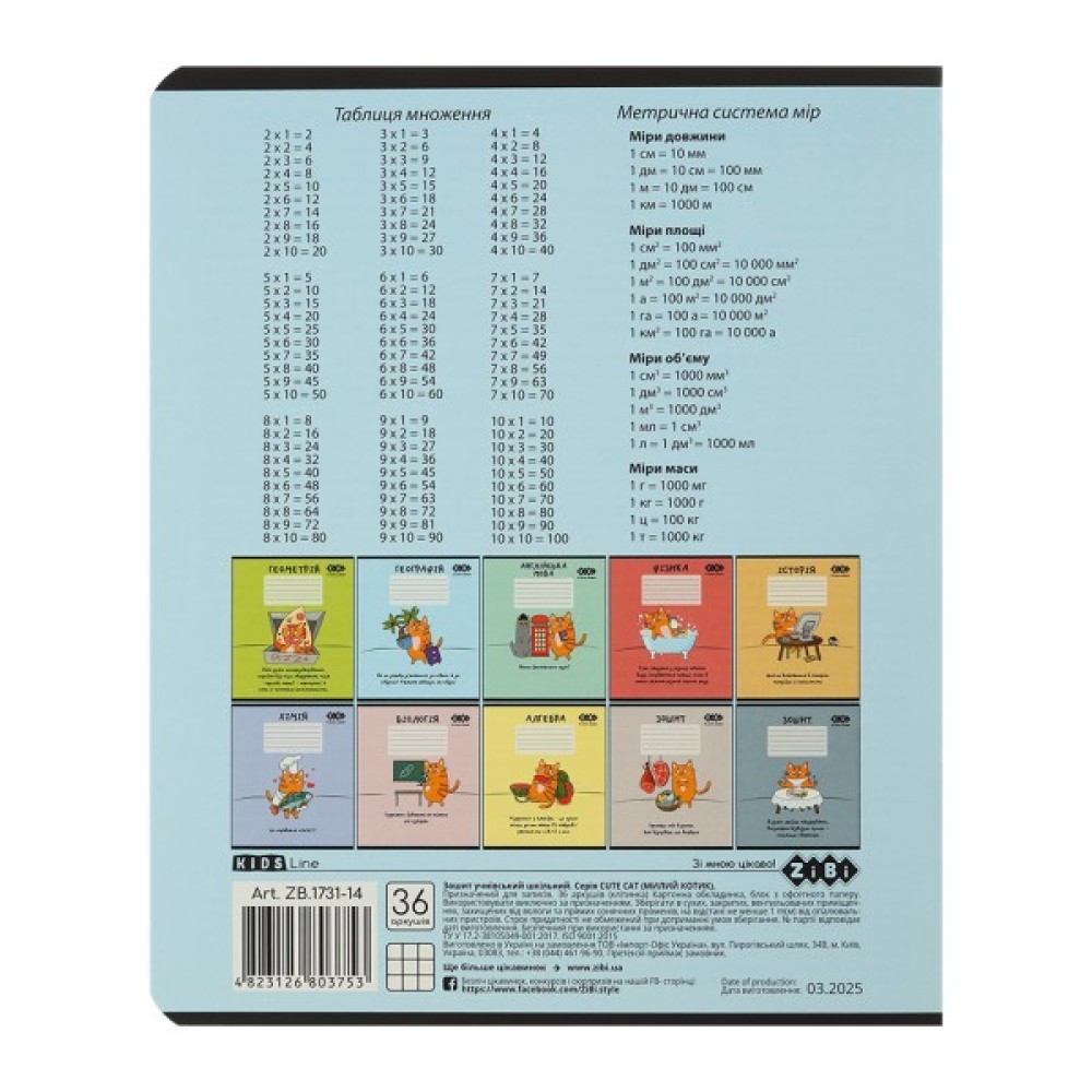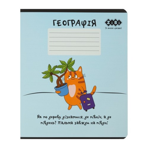 Зошит учнівський шкільний серії "CUTE CAT" з географії від ZiBi з креативним сучасним дизайном обкладинки та блоком корисної довідкової інформації чудово підходять для виконання класних та домашніх робіт.