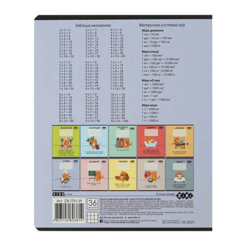 Зошит учнівський шкільний серії "CUTE CAT" з хімії від ZiBi з креативним сучасним дизайном обкладинки та блоком корисної довідкової інформації чудово підходять для виконання класних та домашніх робіт.