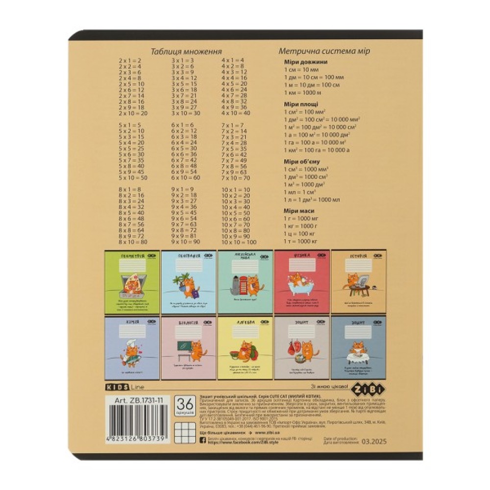 Зошит учнівський шкільний серії "CUTE CAT" з історії України від ZiBi з креативним сучасним дизайном обкладинки та блоком корисної довідкової інформації чудово підходять для виконання класних та домашніх робіт.