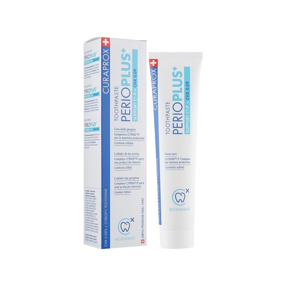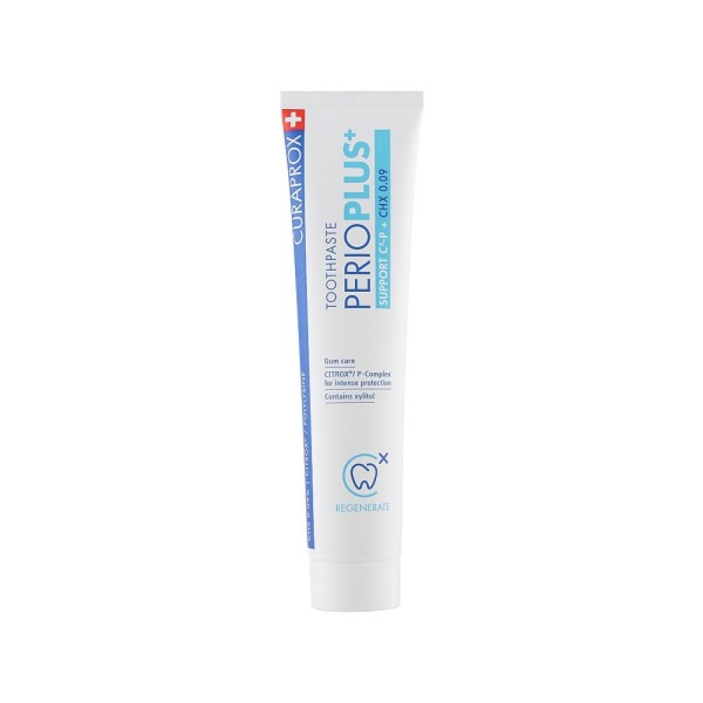 Зубна паста Curaprox PerioPlus+ Support об'ємом 75 мл створена для комплексного захисту і щоденного догляду за вашими зубами та яснами. Завдяки 0.09% хлоргексидину, вона надійно усуває бактерії та запалення, допомагаючи боротися з пародонтозом. Формула, що містить комплекс CITROX® і гіалуронову кислоту, зміцнює ягоді тканини і освіжає дихання. Натуральні екстракти цитрусових і PVP-VA створюють захисну плівку на яснах, залишаючи зуби білими та міцними. Не містить SLS і спирту, що робить цю професійну пасту безпечною для щоденного використання.