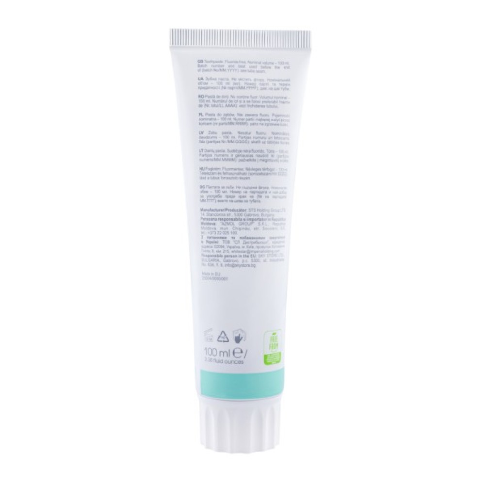 Склад: Aqua, Hydrogenated Starch Hydrolysate, Dicalcium Phosphate Dihydrate, Hydrated Silica, Glycerin, Cellulose Gum, Sodium Coco-Sulfate, Aroma, PVP, Calcium Hydroxyapatite, o-Cymen-5-ol, Papain, Stevia Rebaudiana Leaf Extract, Juglans Regia Leaf Extract, Helianthus Annuus Seed Oil, Menthyl Lactate, Citrus Limon Peel Oil, Chamomilla Recutita Flower Oil, Pullulan, Acacia Senegal Gum Extract, Tocopherol, Ascorbyl Palmitate, Xanthophylls, Mannitol, Limonene.