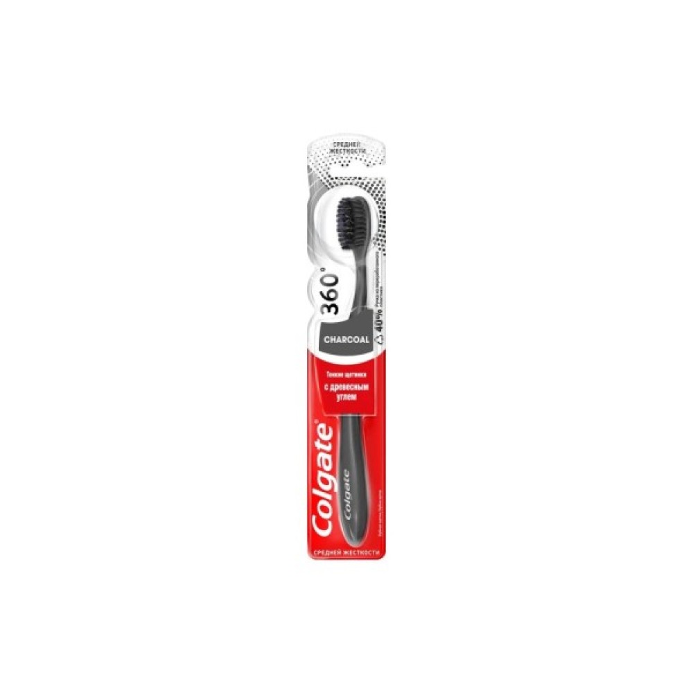 Зубна щітка Colgate 360 деревне вугілля - це практична комбінація, яка дозволяє якісно очистити зуби з усіх боків, позбутися надокучливого нальоту і зробити посмішку свіжою та блискучою. Адже додавання деревного вугілля в щетинки забезпечує додаткове відбілювання і ще якісніше очищення від бактерій. Особлива форма щетинок розроблена для кращого очищення важкодоступних місць, щоб ви могли весь день відчувати свіжість і дарувати посмішки.