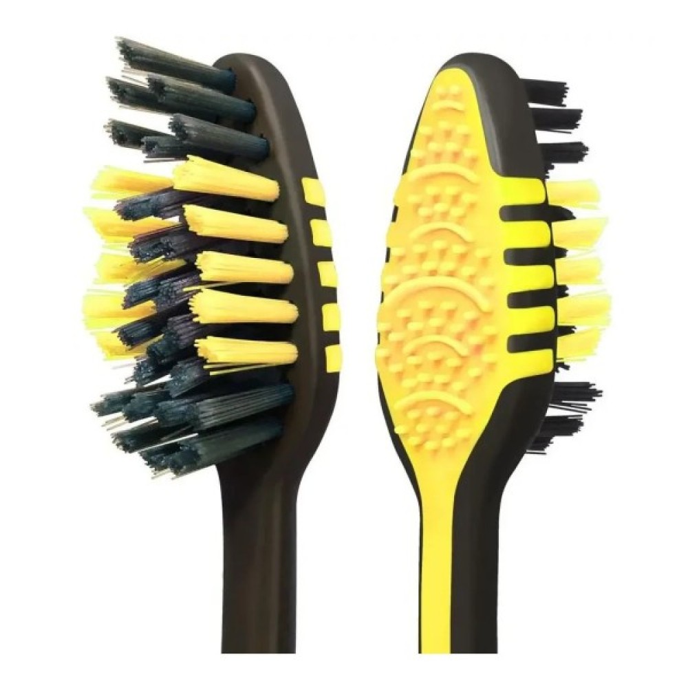 Ця мануальна зубна щітка має перехресні щетинки, наповнені деревним вугіллям, які створені для проникнення глибоко між зубами для ретельного чищення. Зубна щітка також має засіб для чищення язика, який м’яко видаляє бактерії, що спричиняють запах, для впевненої усмішки протягом усього дня.