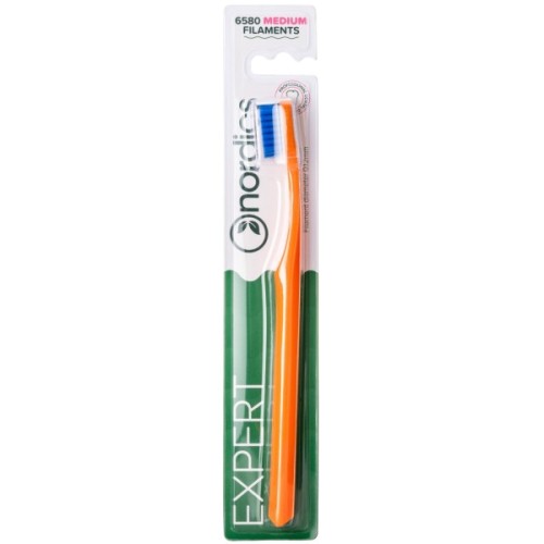 Зубна, щітка, Nordics, 6580, Expert, Curve, Medium, Помаранчева, з, блакитною, щетиною, 3800501908280