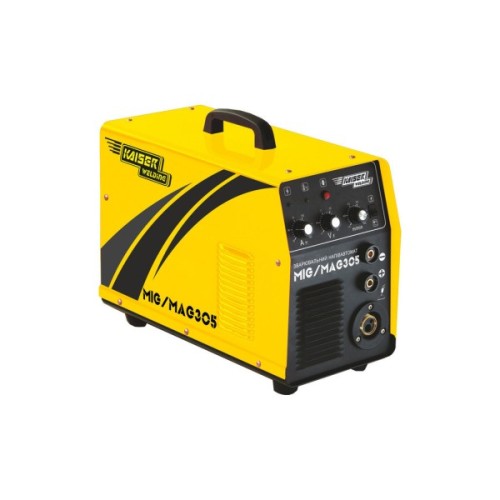 Інверторний напівавтомат Kaiser MIG-305 з максимальним зварювальним струмом 265 А — це надійний професійний апарат, який використовується для напівавтоматичного зварювання виробів із маловуглецевої й низьколегованої сталі плавким електродним дротом (0.6-1.0 мм) на постійному струмі, як у середовищі захисних газів (аргон, вуглекислий газ), так і флюсового без газу.