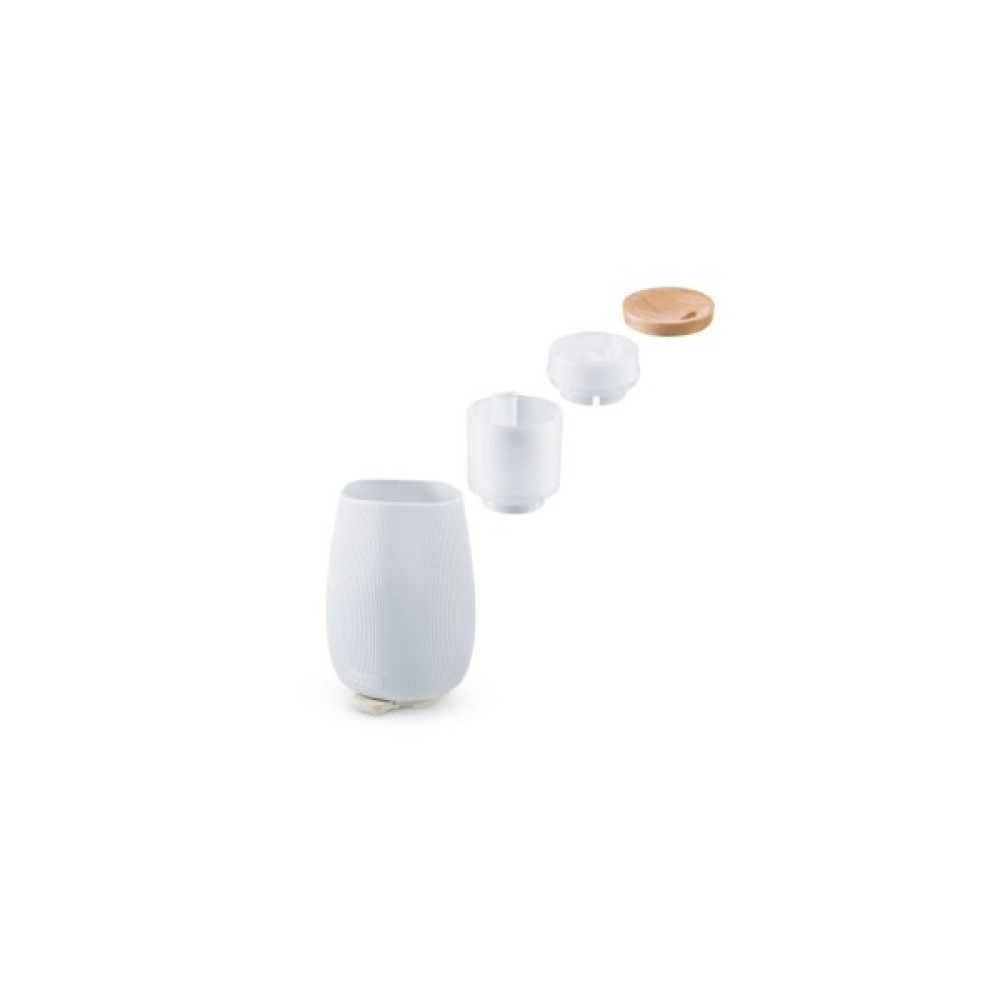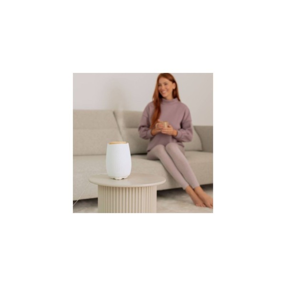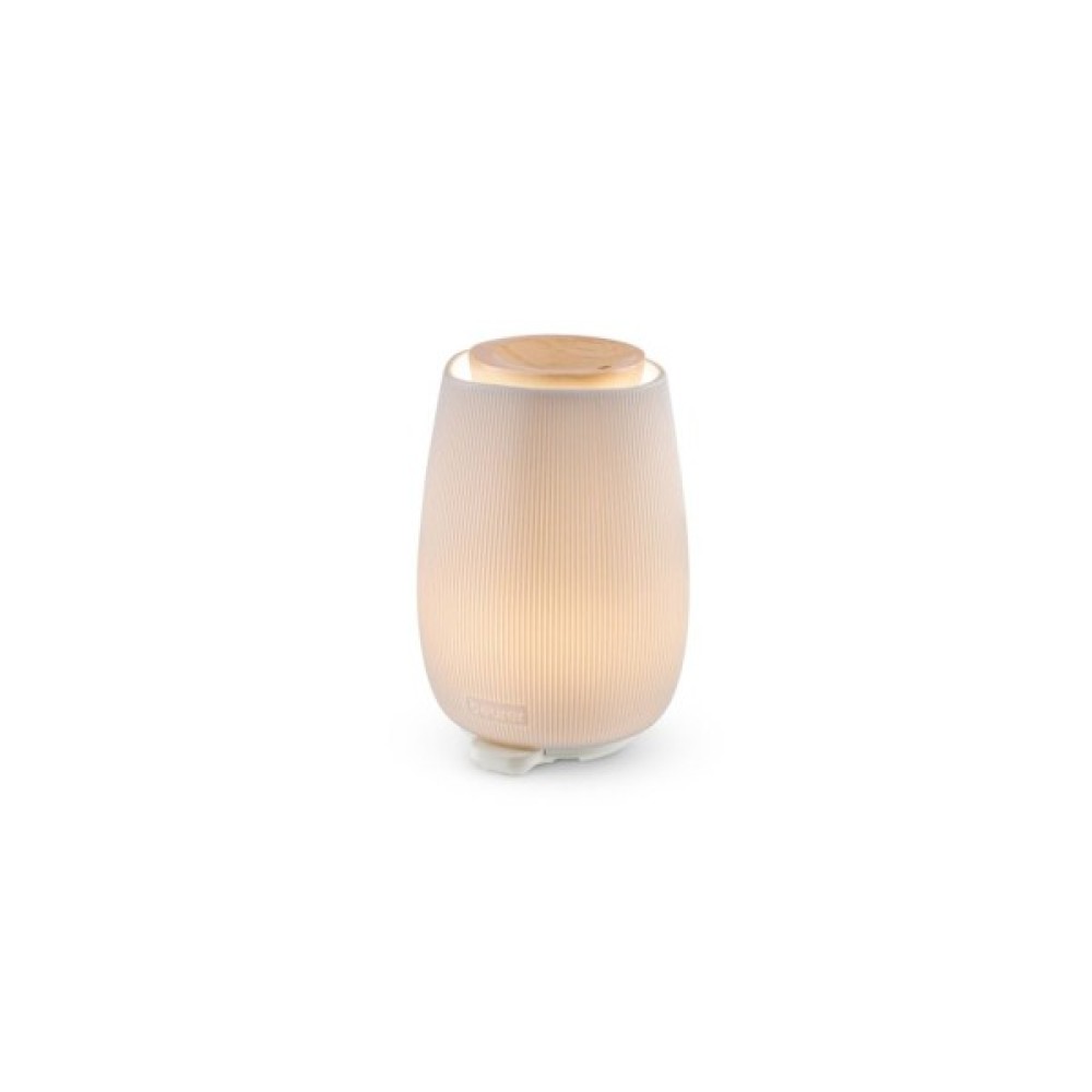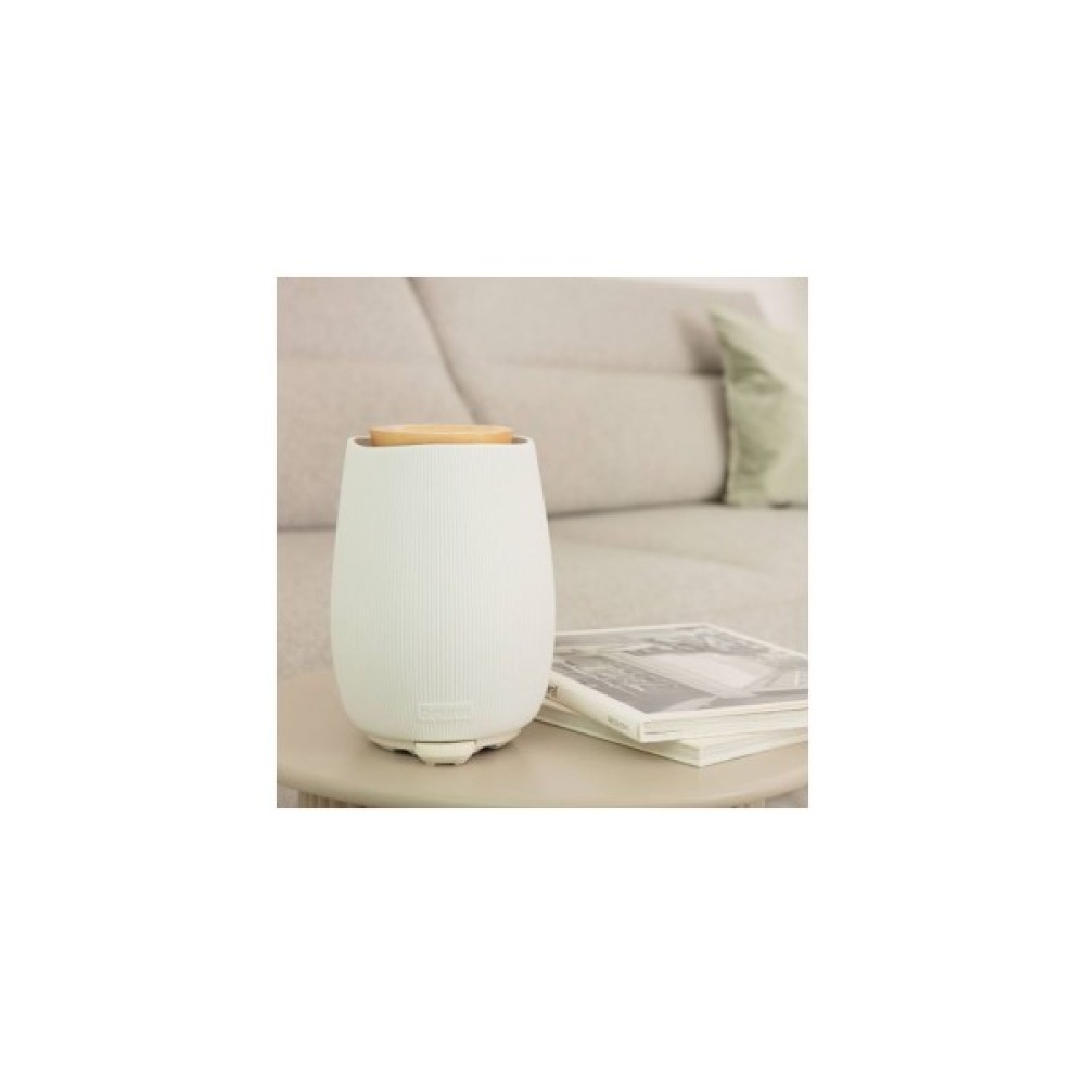 Beurer LA 45 GP — стильна аромалампа у ніжному теплому відтінку з ультразвуковою технологією для приміщень до 20 м². Вона поєднує мікродисперсне розпилення, 9-кольорову LED-підсвітку, тиху роботу та натуральні матеріали — кераміку та FSC-сертифіковане дерево. Прилад рівномірно ароматизує кімнату, створює затишну атмосферу та сприяє релаксації. Аромадифузор має два режими роботи: постійний та інтервальний, тому легко підібрати комфортну інтенсивність аромату. Постійний режим — дифузор розпилює аромат безперервно для швидкого й насиченого наповнення кімнати. Інтервальний режим — працює з паузами, створюючи делікатніший аромат і продовжуючи час роботи приладу. М’яке LED-світло підсилює розслаблення та працює у 9 кольорах. Можна увімкнути лише освітлення — без розпилення. Завдяки тихій роботі прилад ідеально підходить для спальні, вітальні чи робочого куточка. Резервуар на 140 мл легко заповнювати та очищувати. Функція автоматичного вимкнення спрацьовує при порожньому баку — це безпечно та зручно. Потужність лише 12 Вт робить модель економною у користуванні. LA 45 GP — це природна естетика, делікатний аромат і комфорт щодня. Він стане стильним елементом інтер’єру й чудовим сюрпризом для тих, хто любить домашній комфорт.